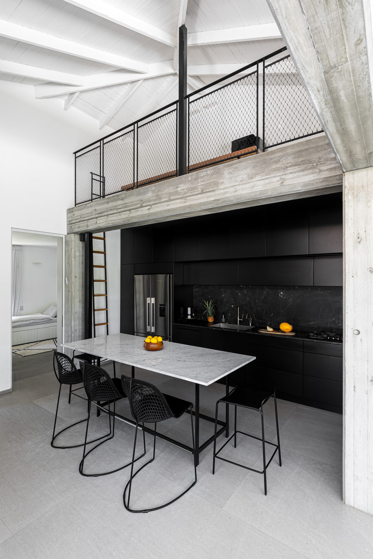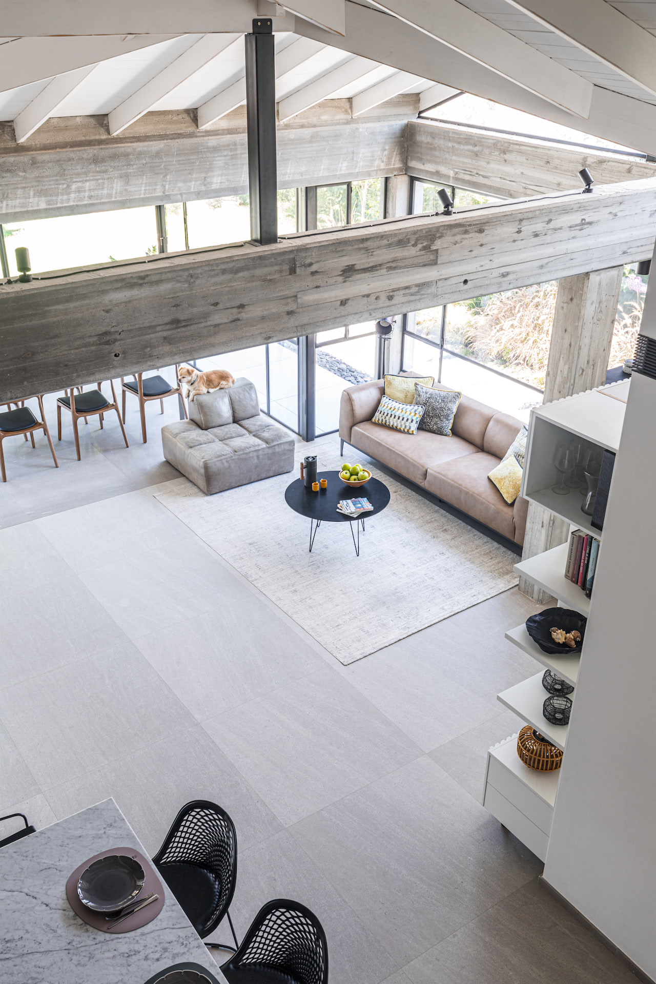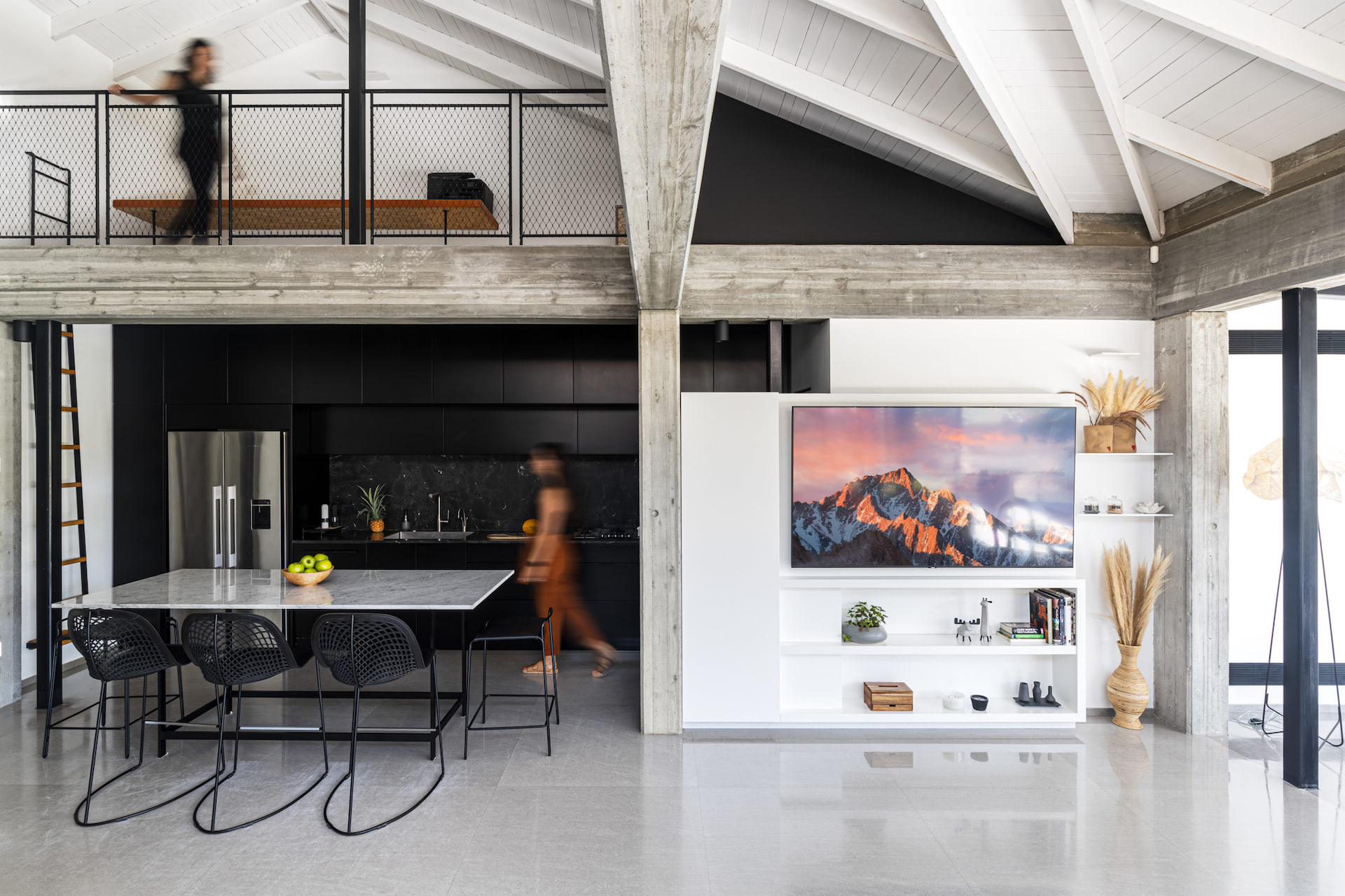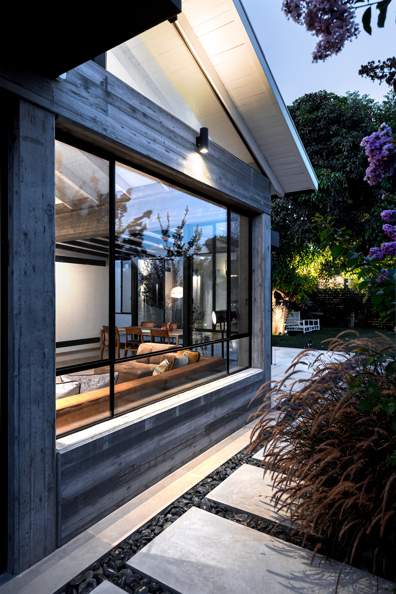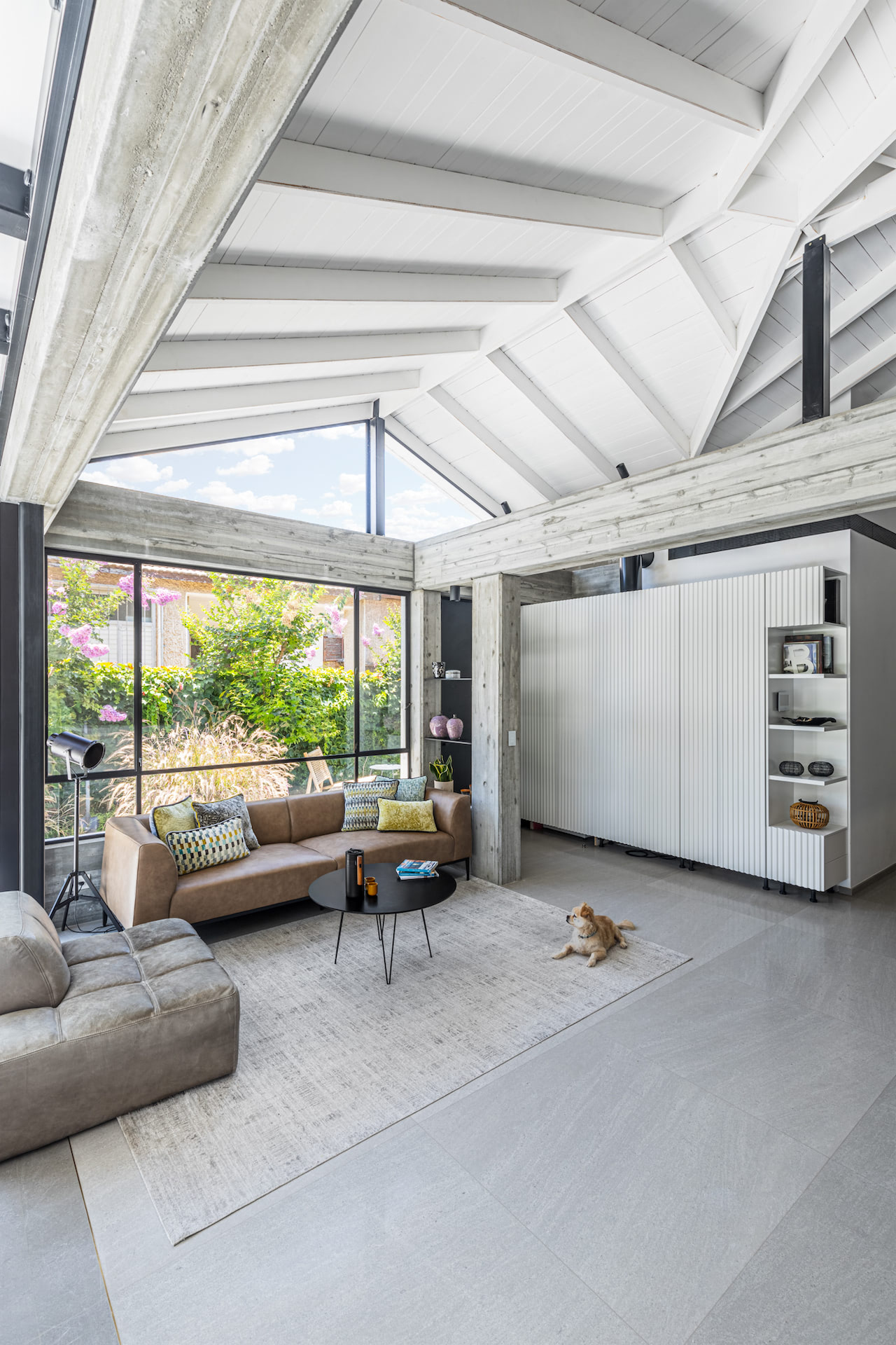 בית פרטי במרכז הארץ מודרני ומינימליסטי עשוי כולו מחומרים טבעיים, בטון חשוף וחלונות בלגי ברזל שחורים ברמת גימור גבוהה במיוחד.