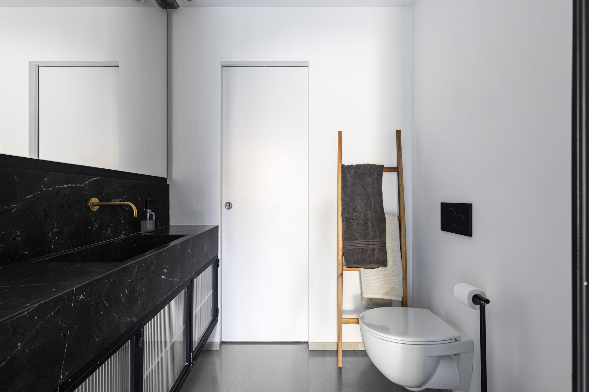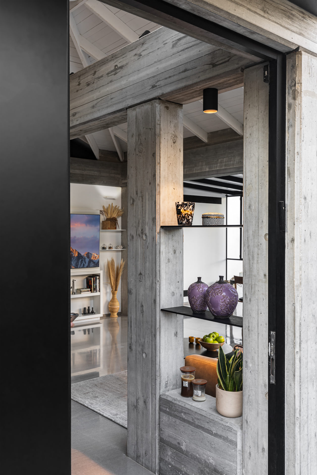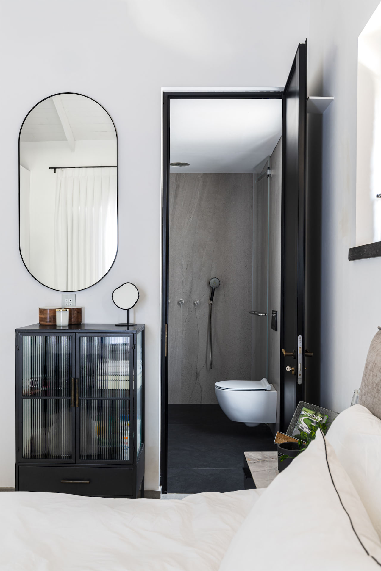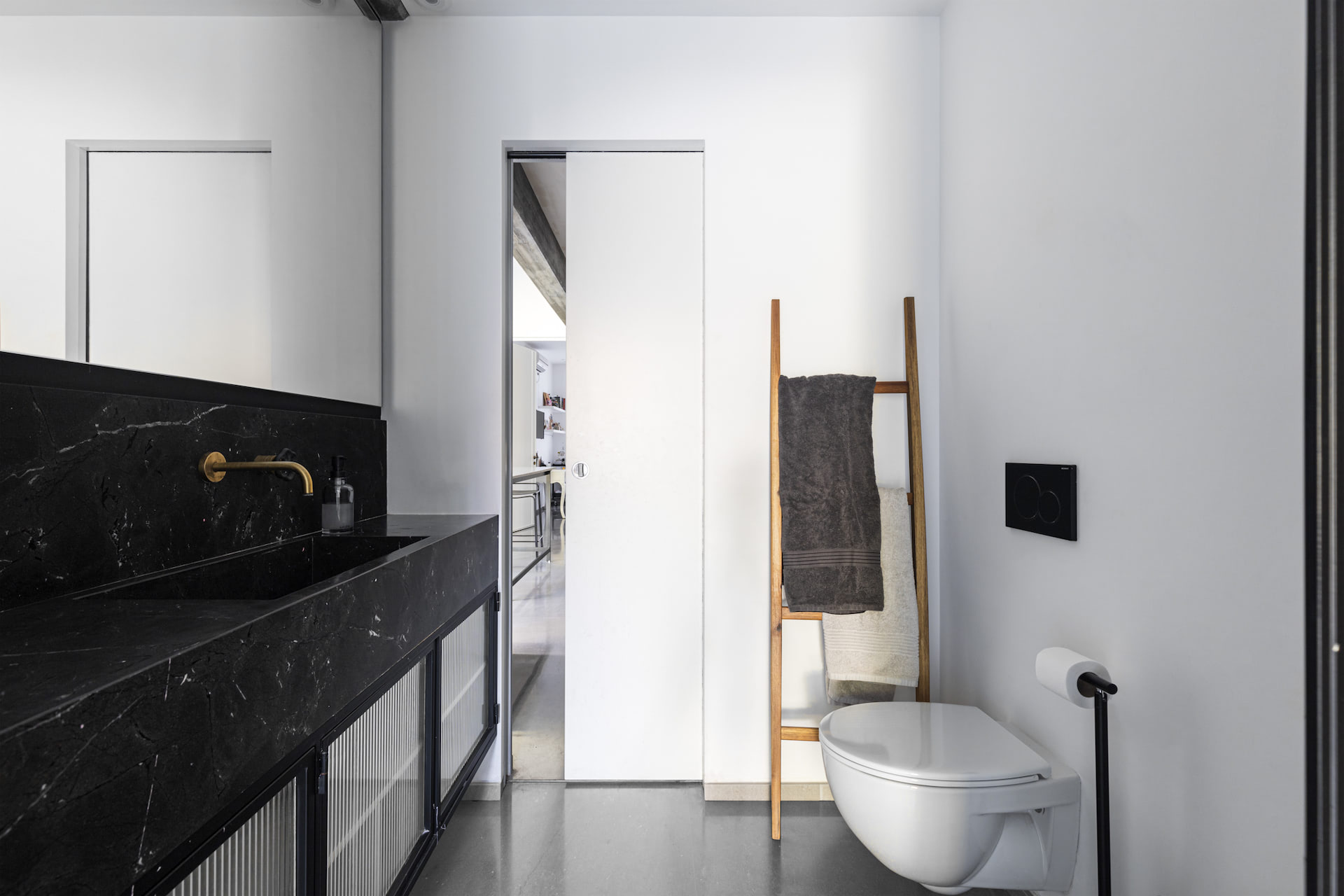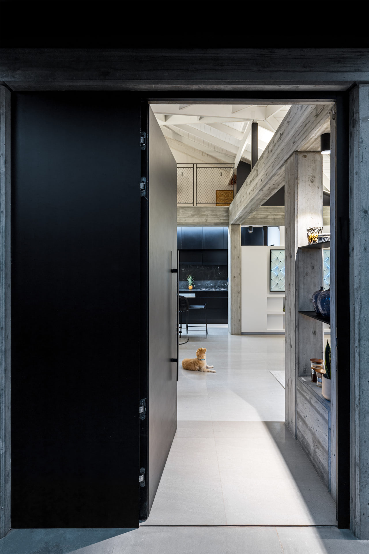 בית פרטי במרכז הארץ מודרני ומינימליסטי עשוי כולו מחומרים טבעיים, בטון חשוף וחלונות בלגי ברזל שחורים ברמת גימור גבוהה במיוחד.