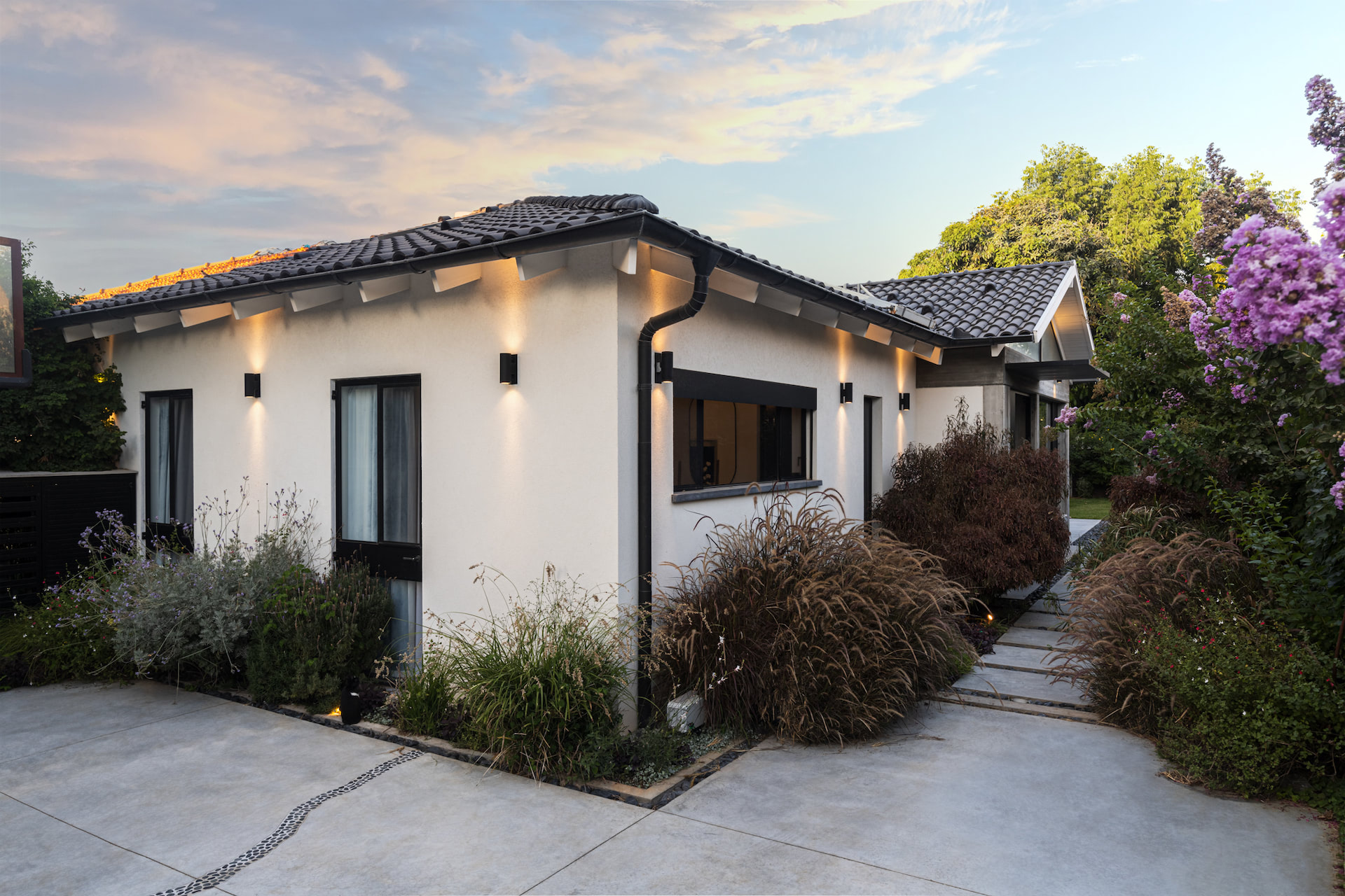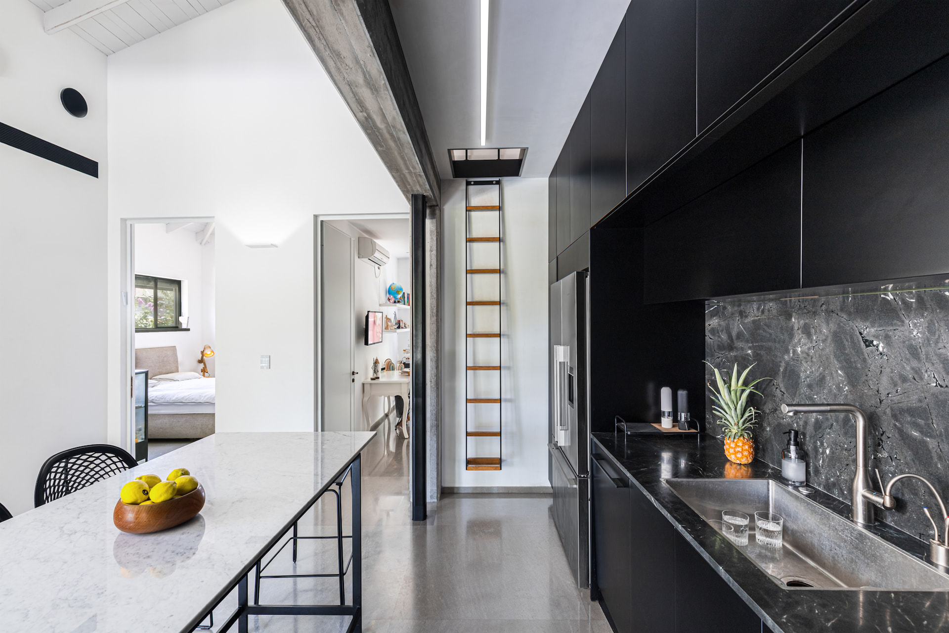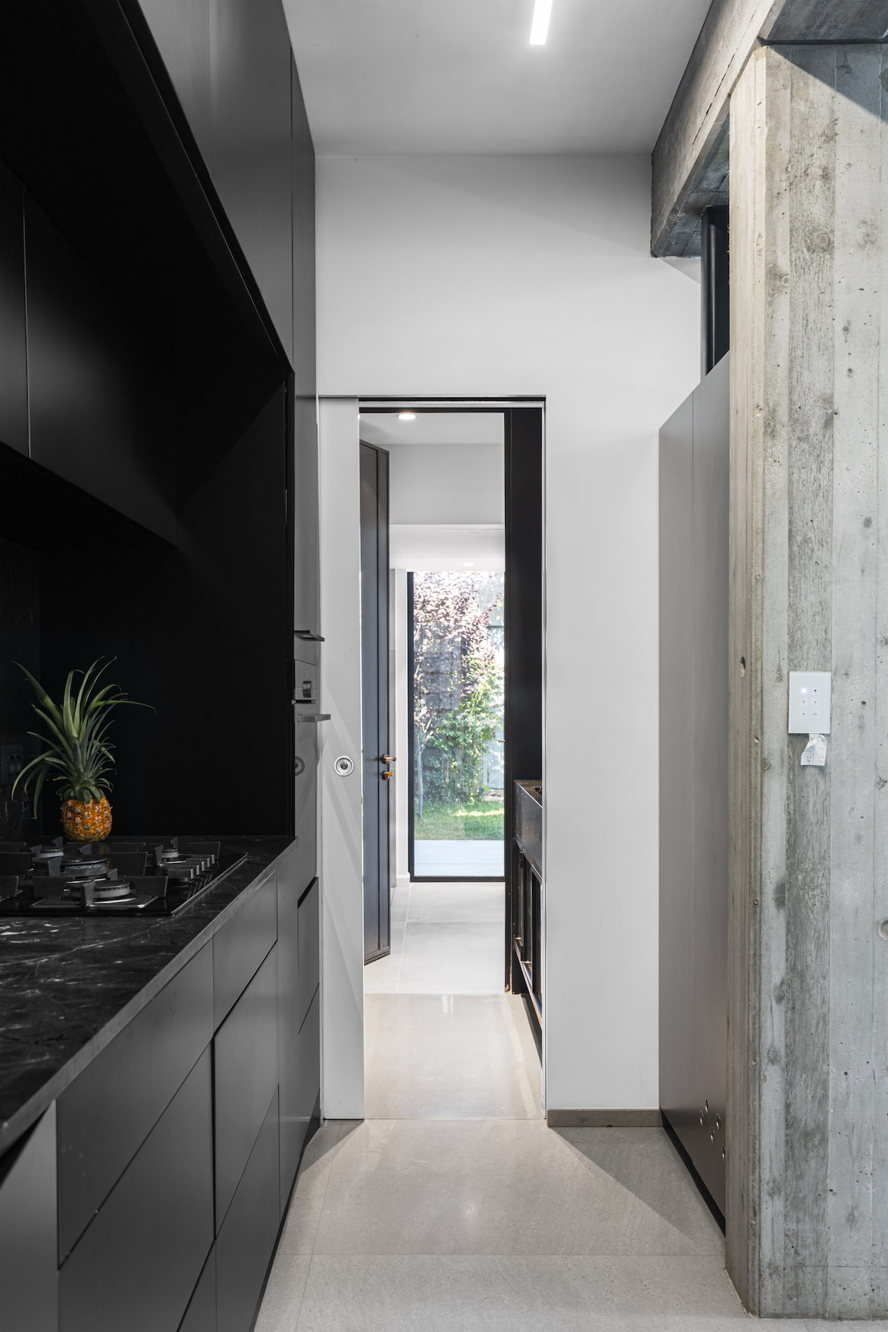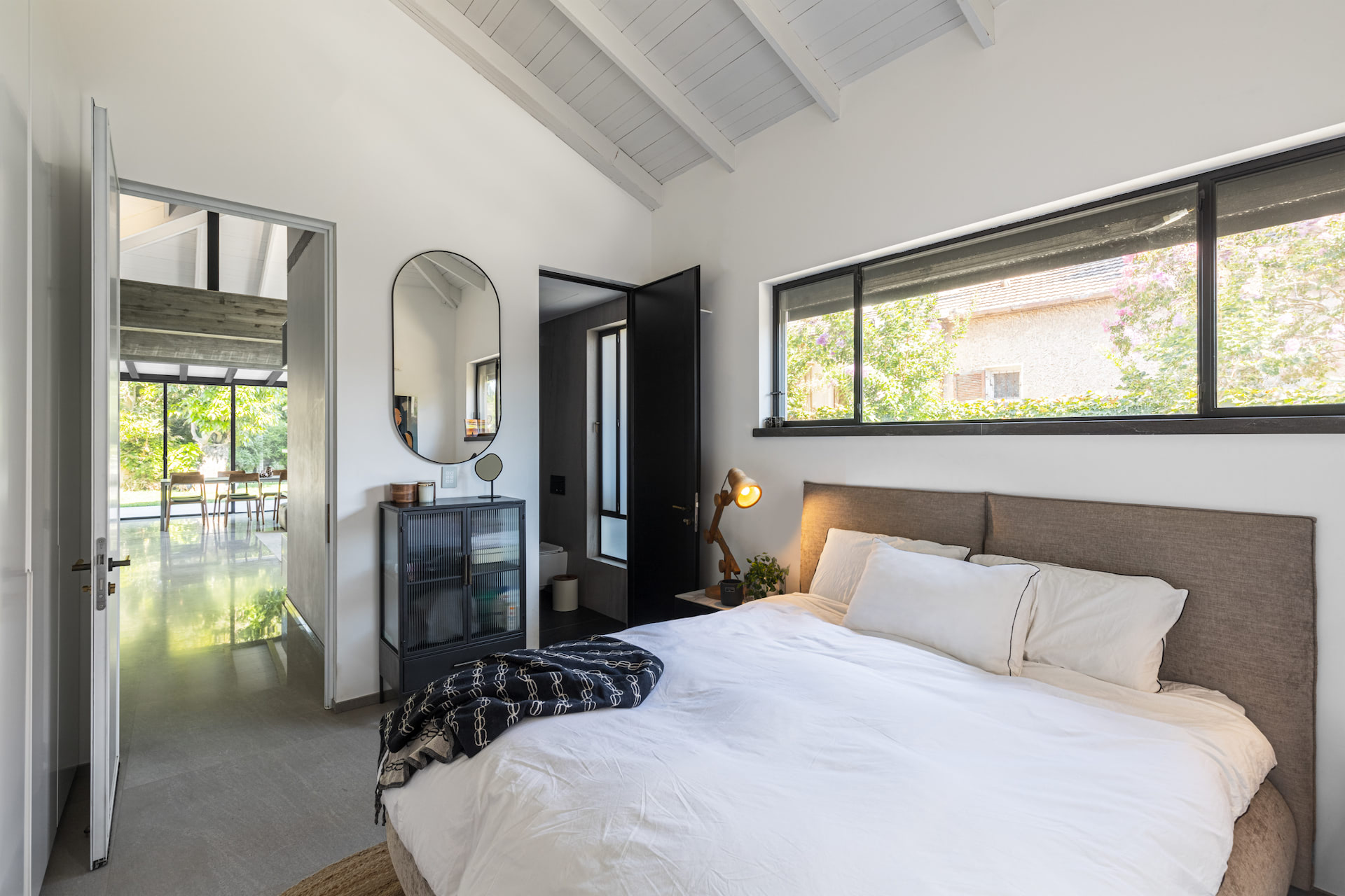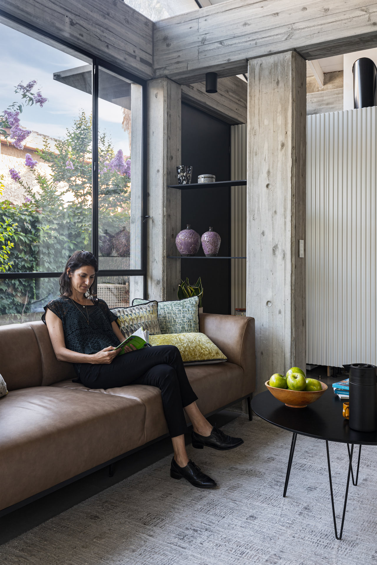 'החשיבה העיצובית שהובילה את הפרויקט הייתה יצירה של בית מודרני ומינימליסטי שמצליח להרגיש ביתי ונעים בזכות החיבור החזק בין הפנים והחוץ והכנסת הצמחייה כחומר נוסף בבית.