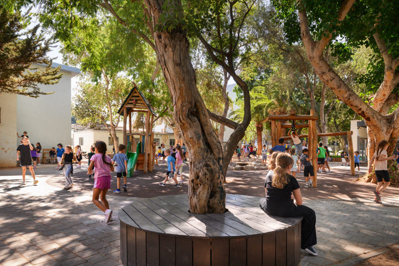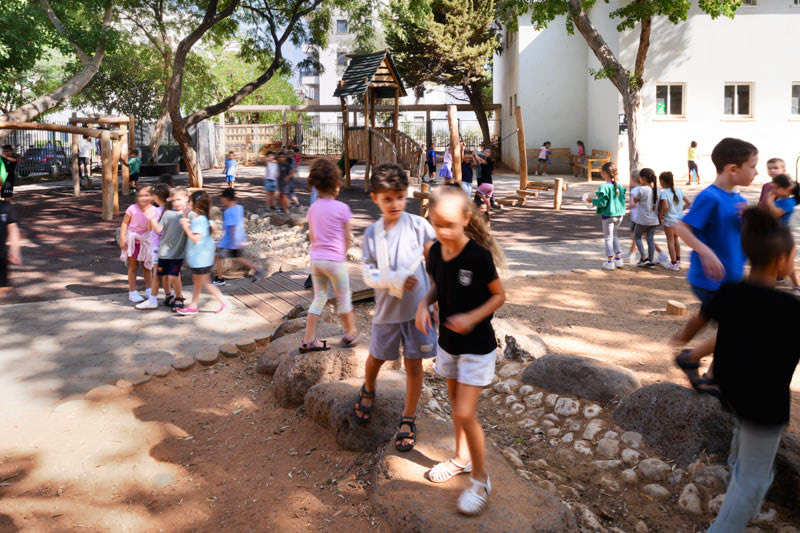 חידוש חצר בית ספר רוקח לחצר טבעית עשירה בפעילויות עבור הילדים. החצר כוללת אזורי משחק ויצירה, שביל חושי, נחל עם סלע נביאה, מטבח בוץ ועוד פעילויות מגוונות.
