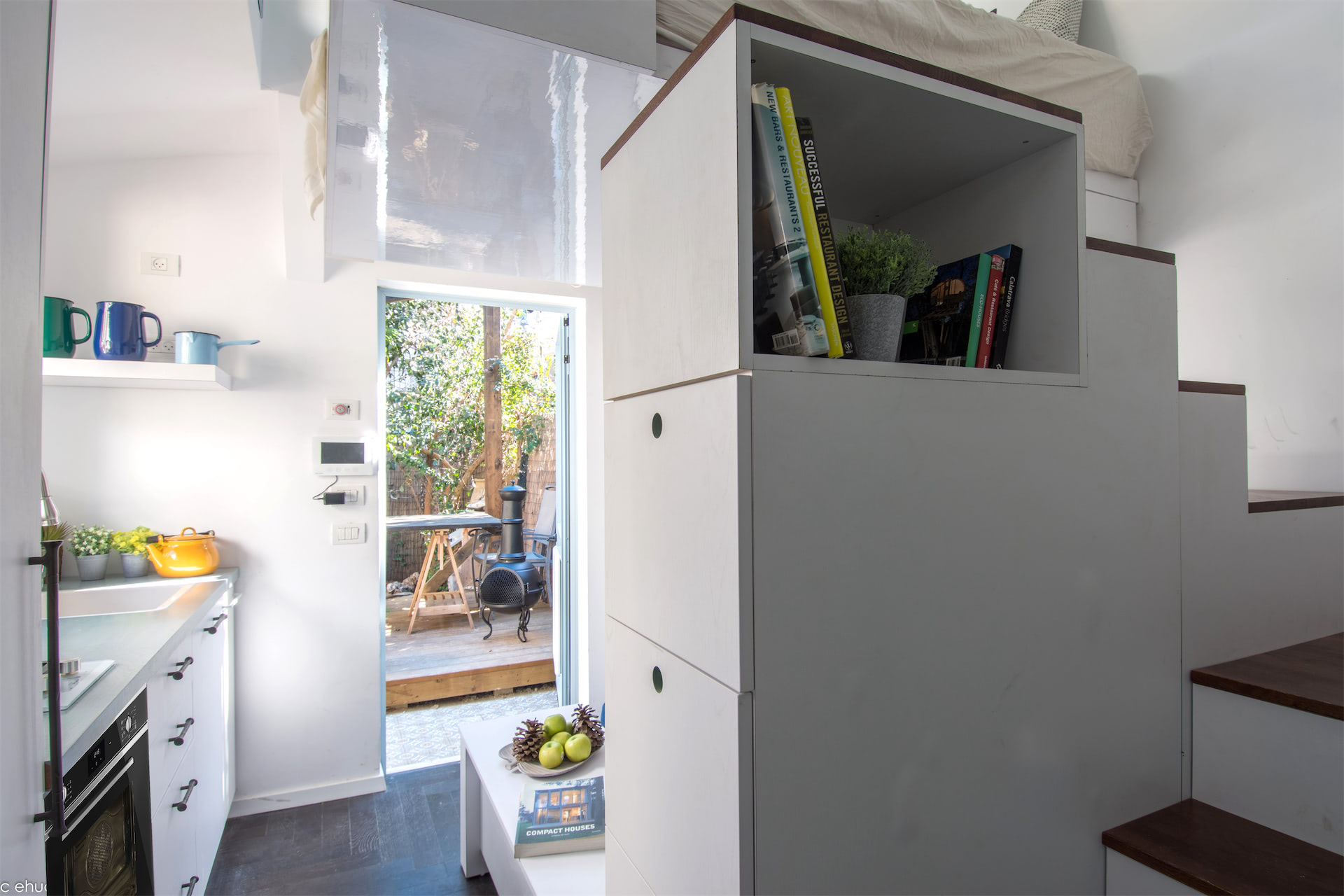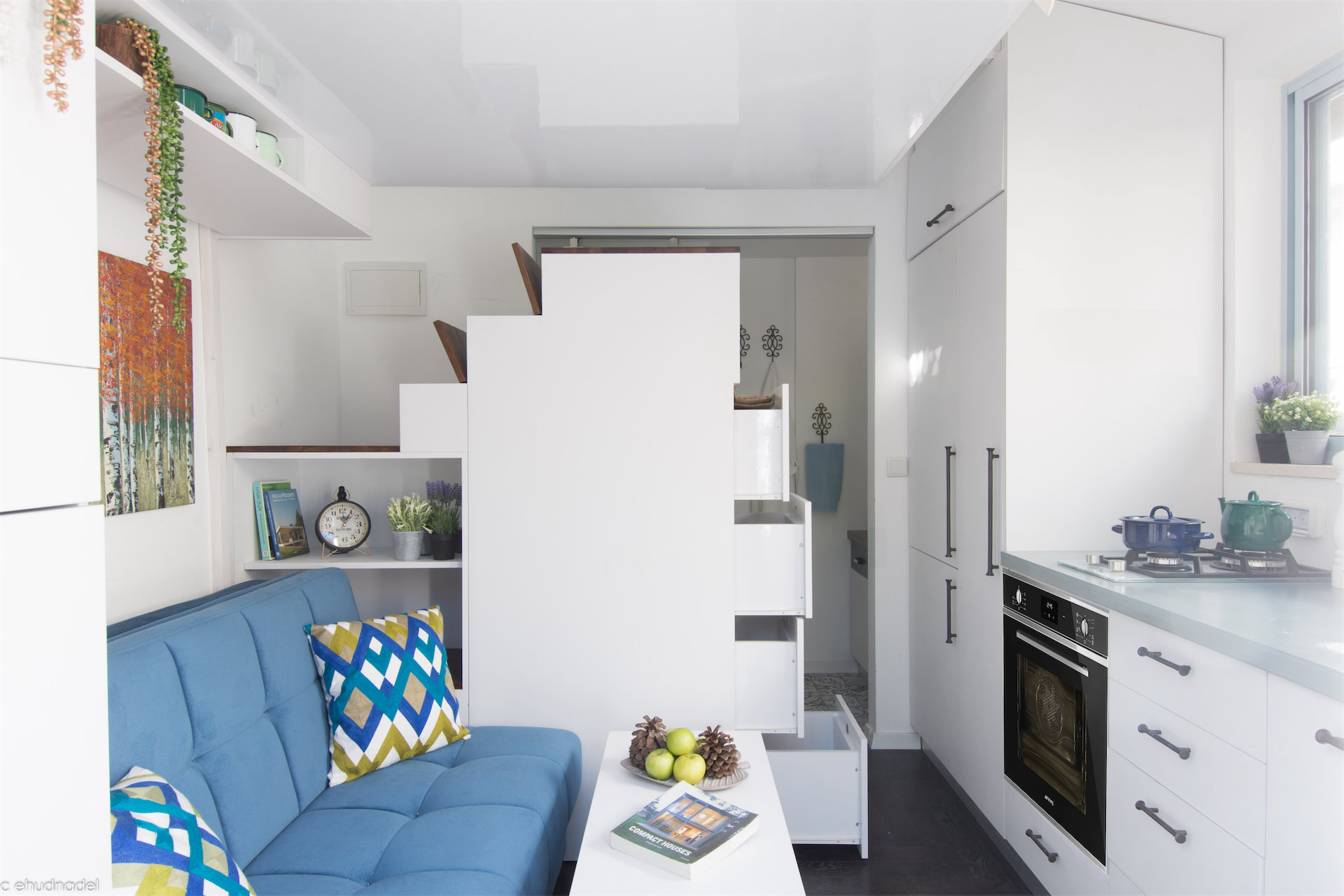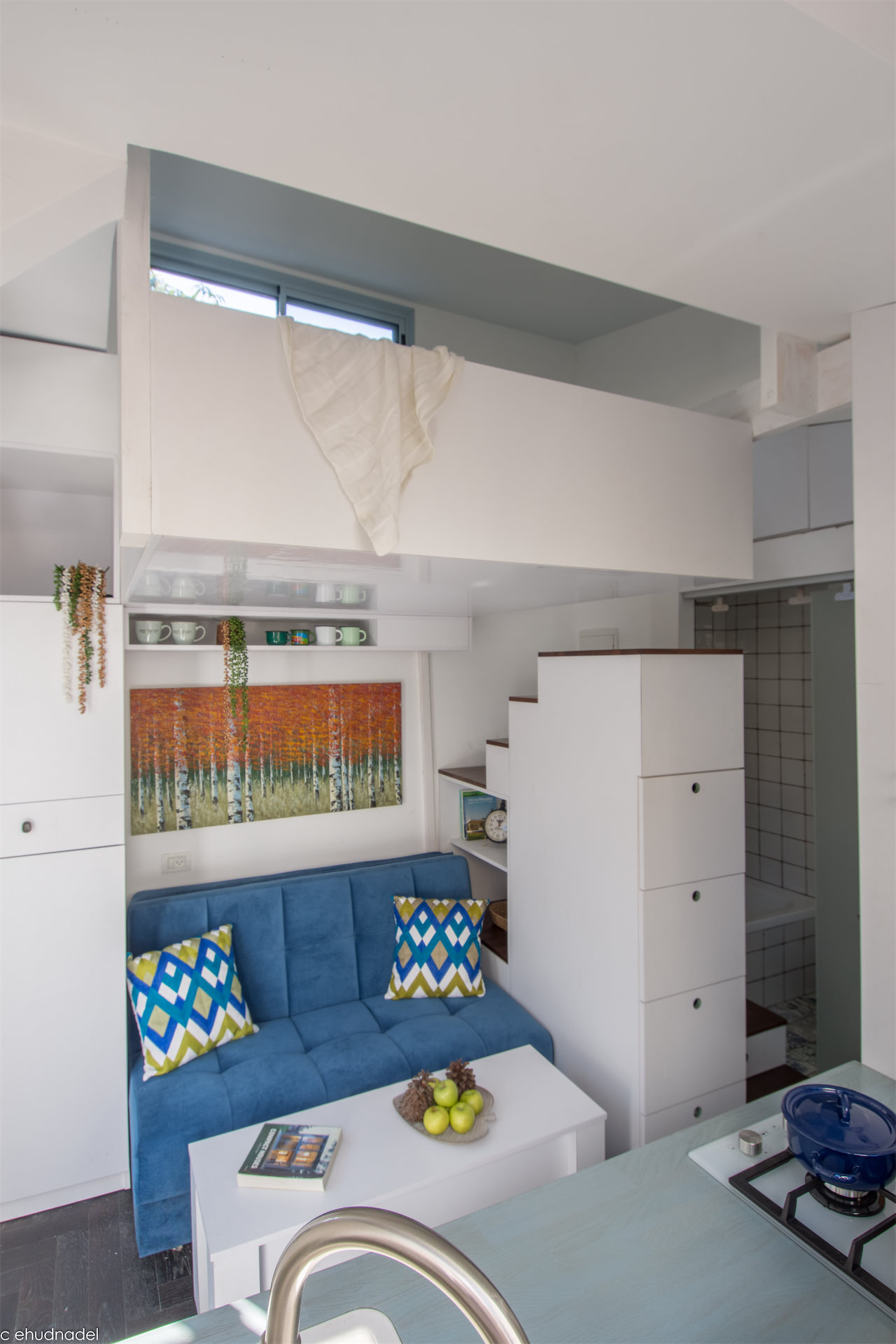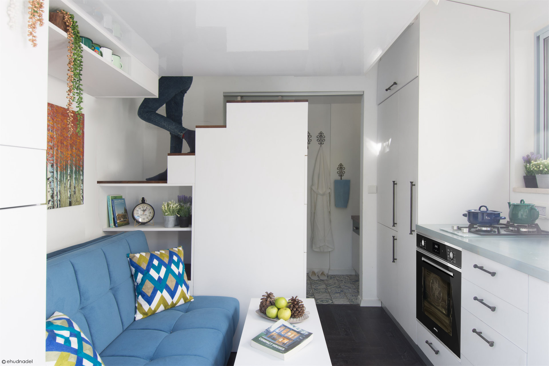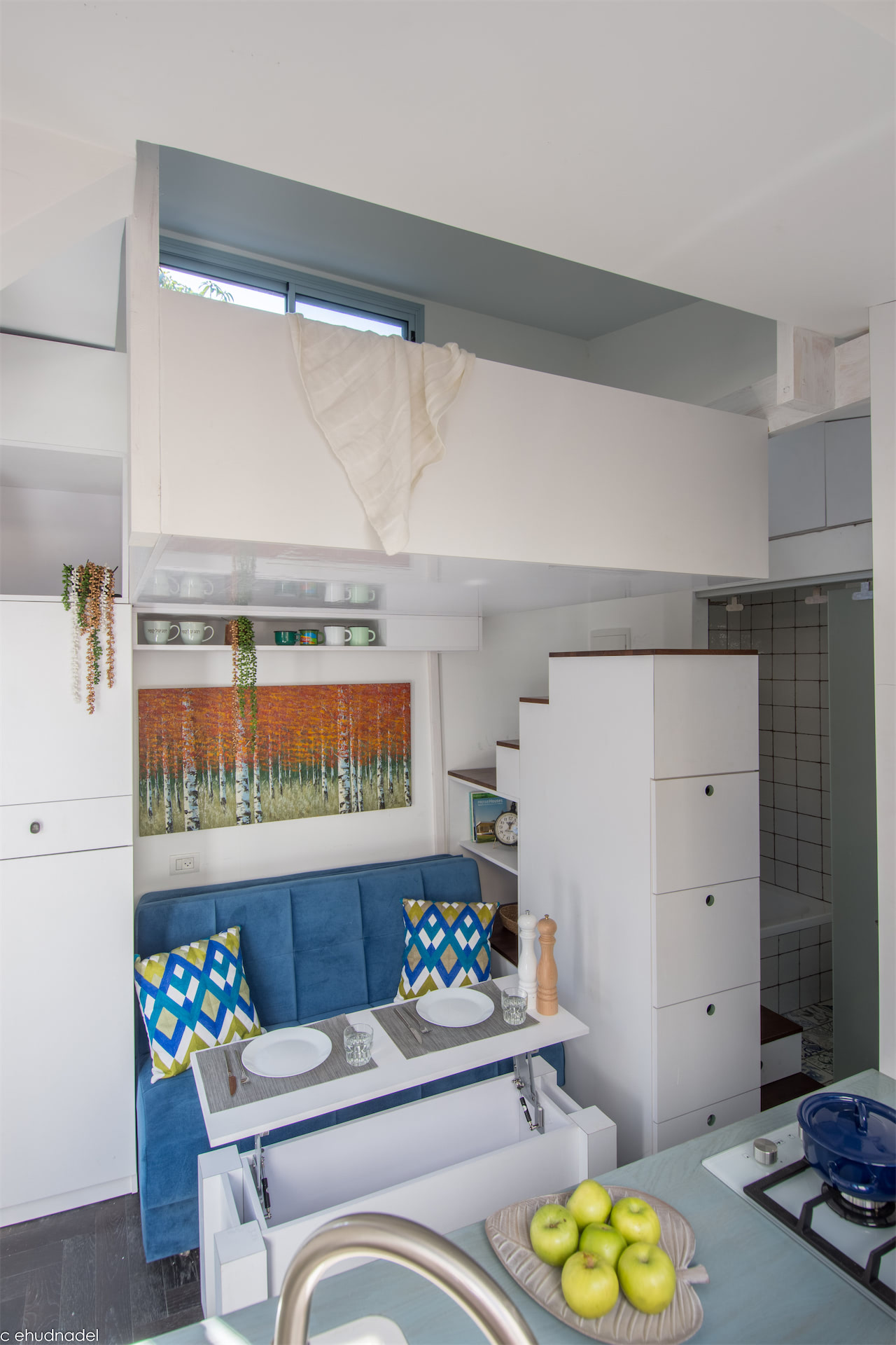 תכנון ועיצוב בית קטנטן וקסום עבור זוג וכלבה. הבית מכיל מטבח מלא, חדר רחצה מלא, מקומות אחסון רבים, מיטה בגלריה וספת אירוח וכל זה בגודל של חדר אחד בבית קונבנציונלי. הבית הקומפקטי תוכנן בקפידה על מנת לנצל כל סנטימטר בתוכו.