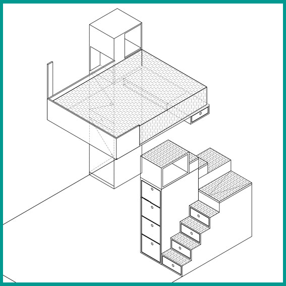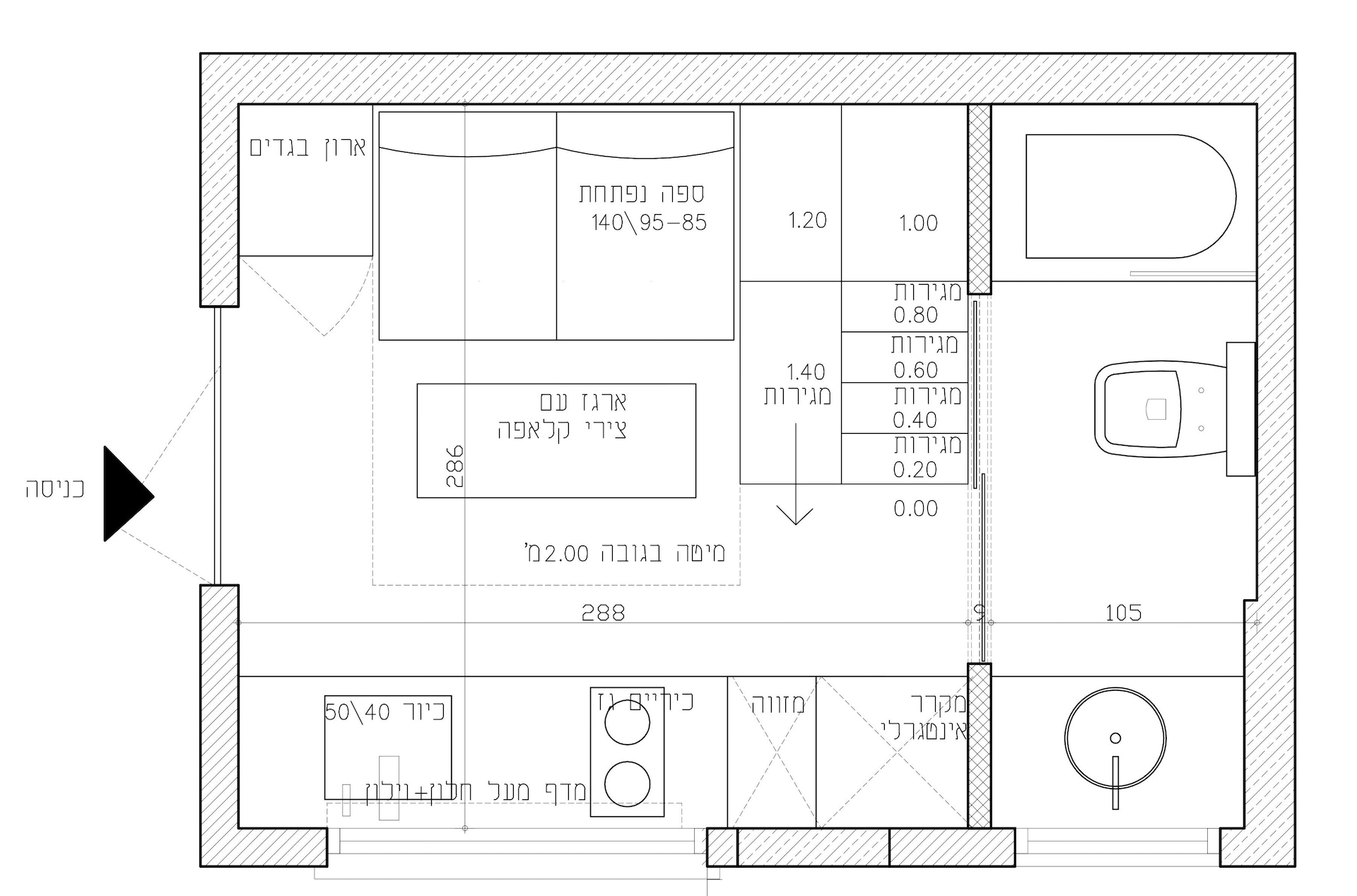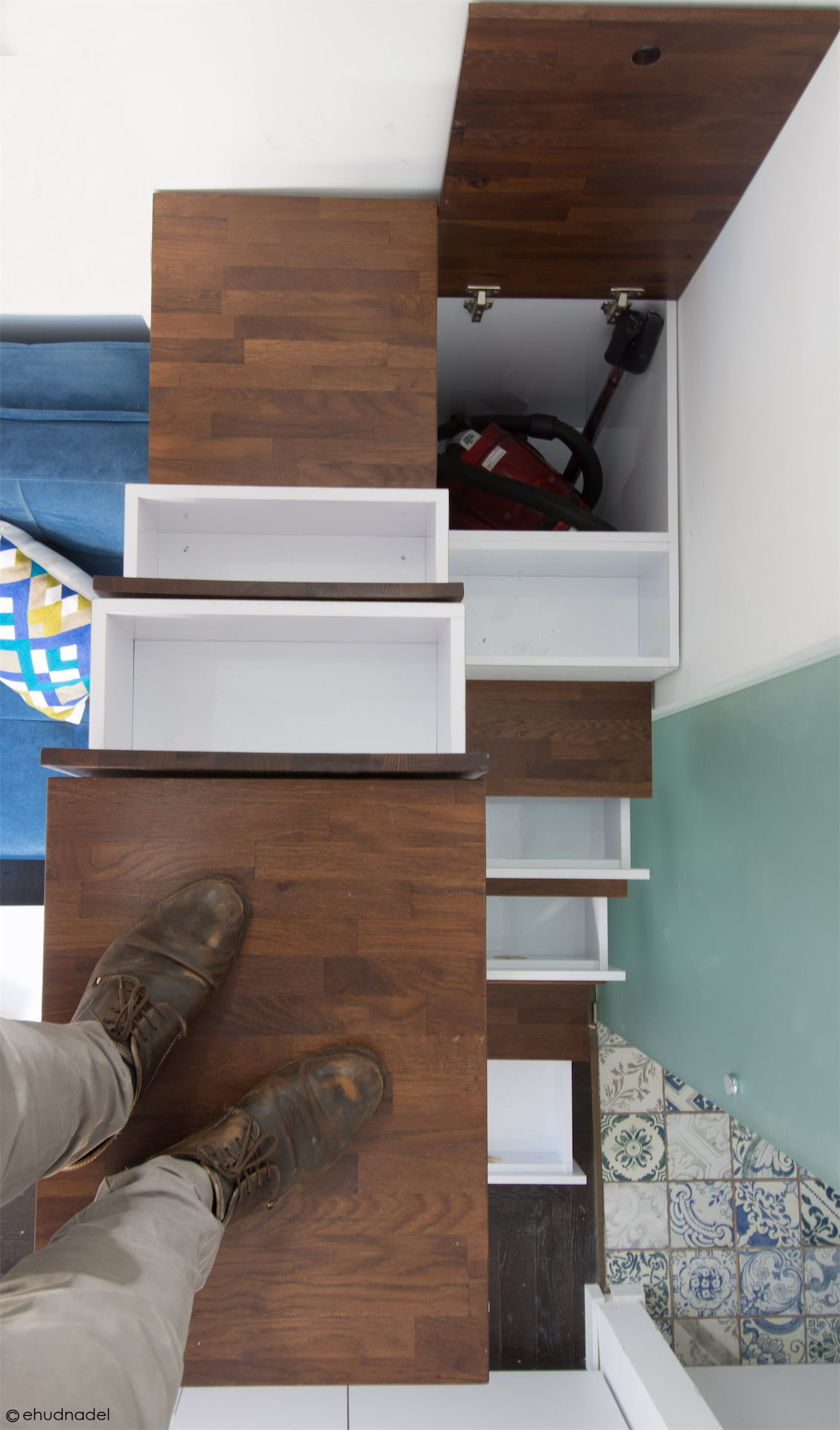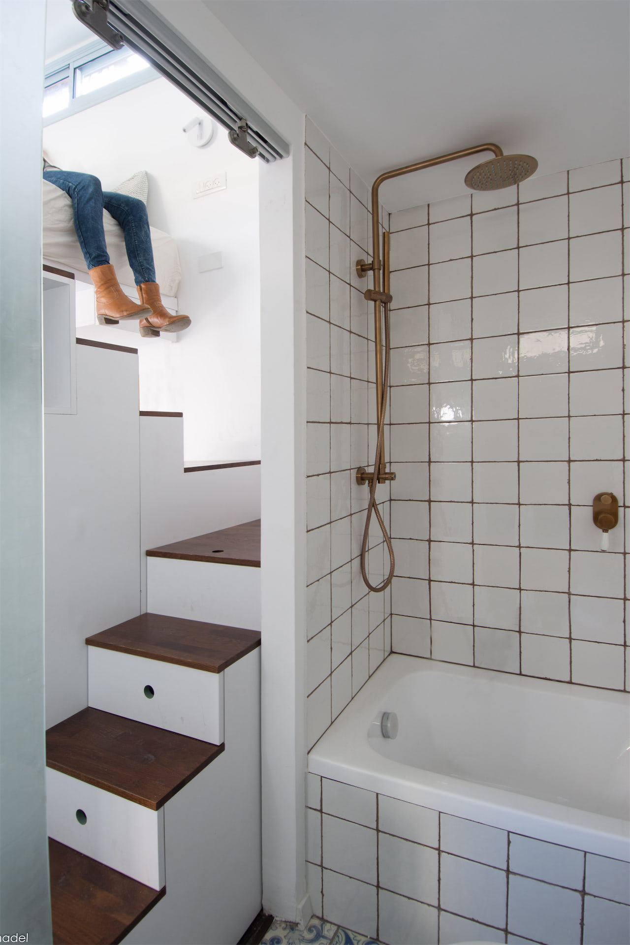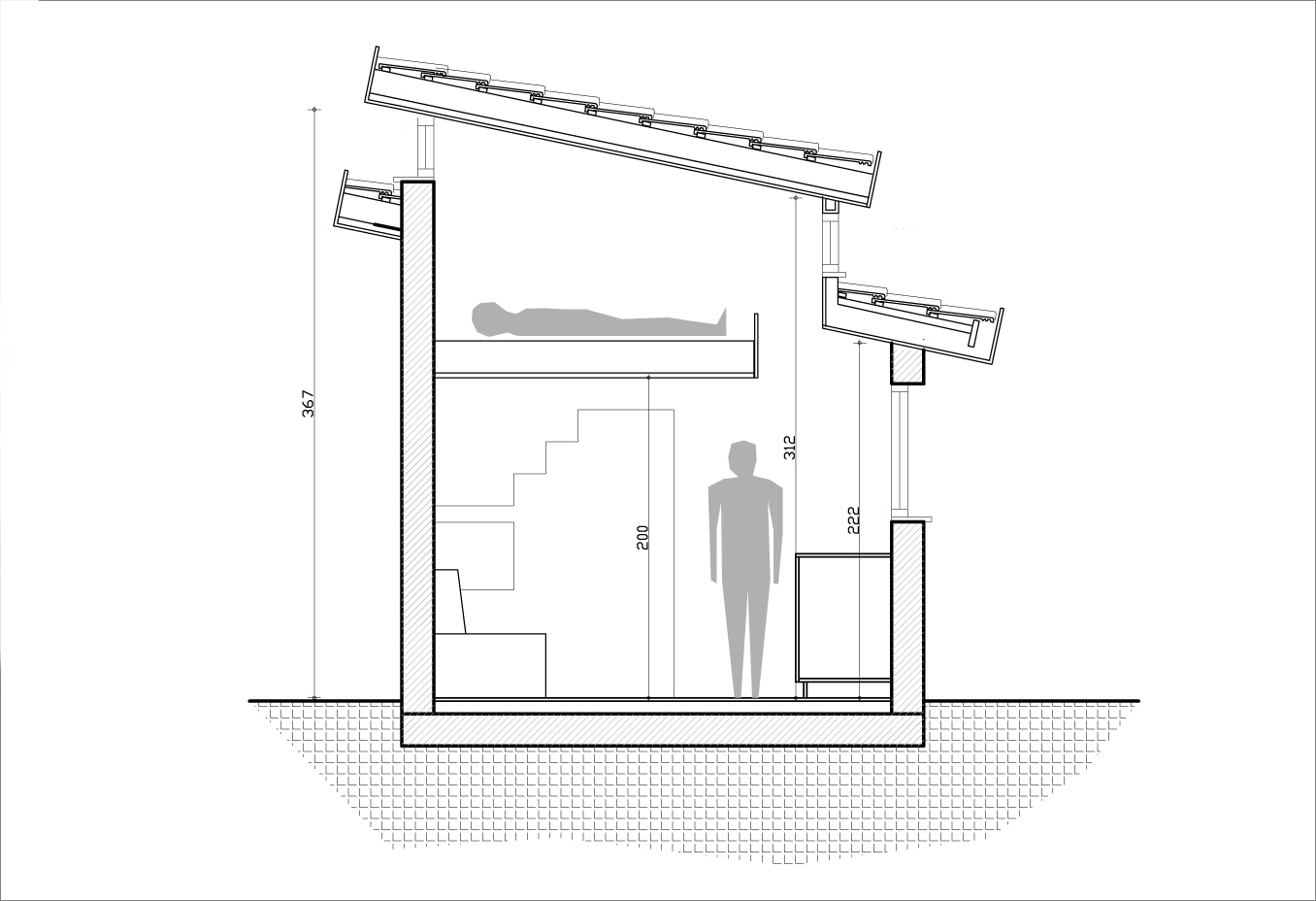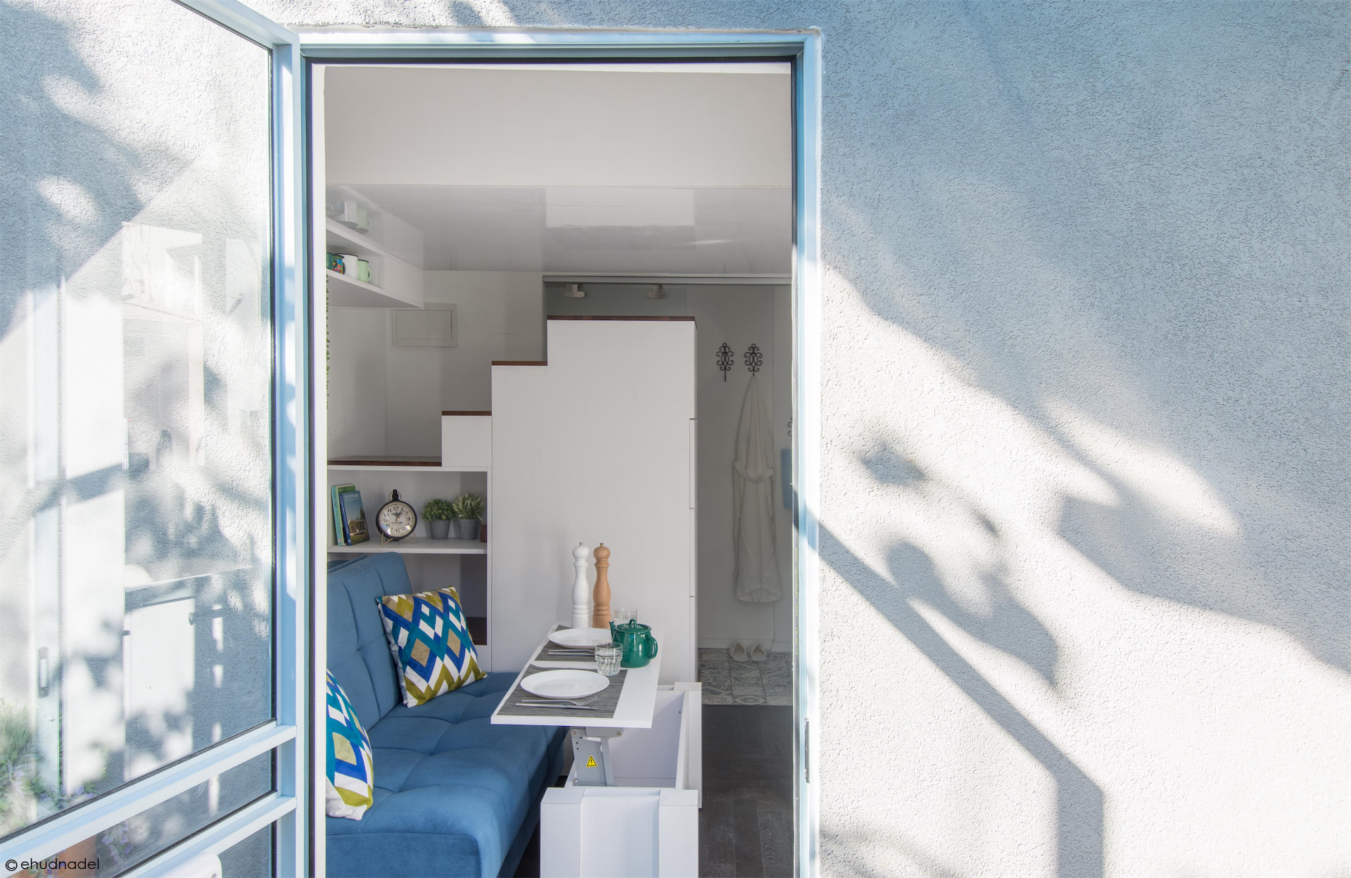 תכנון ועיצוב בית קטנטן וקסום עבור זוג וכלבה. הבית מכיל מטבח מלא, חדר רחצה מלא, מקומות אחסון רבים, מיטה בגלריה וספת אירוח וכל זה בגודל של חדר אחד בבית קונבנציונלי. הבית הקומפקטי תוכנן בקפידה על מנת לנצל כל סנטימטר בתוכו.